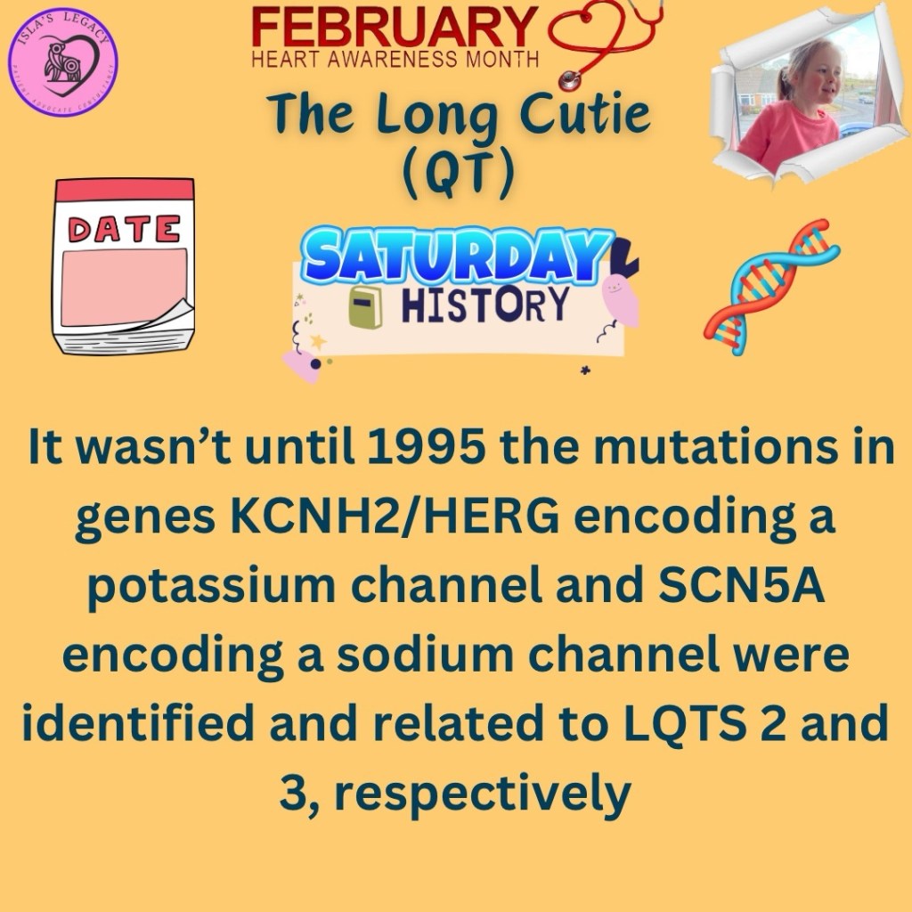 Although Long QT was ‘discovered’ in 1957, it took a long time to uncover the reasons the QT interval is prolonged without medication artificially prolonging it. It wasn’t until 1980 that Schwartz first suggested that some patients with LQTS might have a normal QT interval. The gene causing Long QT Type 1 was nearly uncovered first but was the actually just off with the KCNQ1 gene and it actually wasn’t until the year in 1996, after Long QT 2 and 3 were genetically tracked that Long QT was accurately identified.