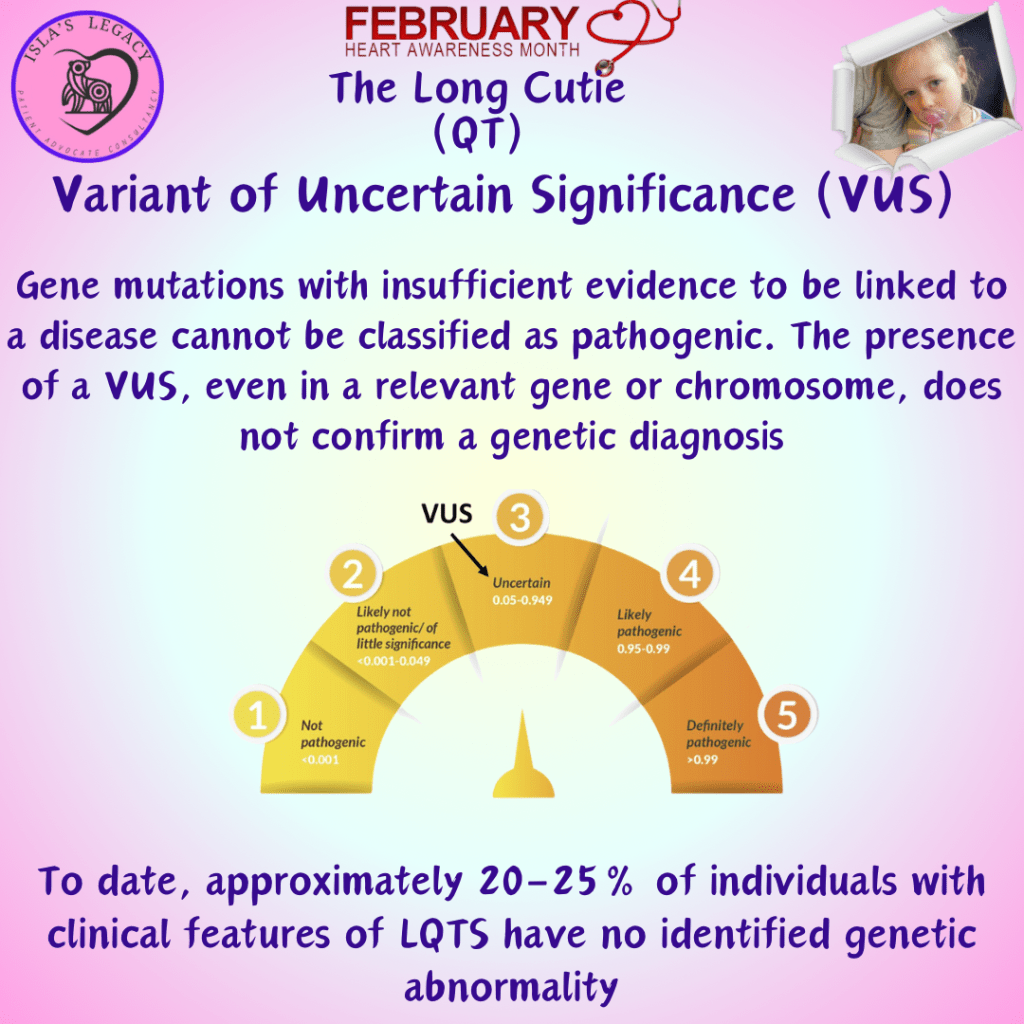 However, a genetic result of VUS doesn’t necessarily mean that you do not have a gene mutation which causes Long QT Syndrome. There is still a lot to learn about genetics and how variants in genes relate to clinical expressions.